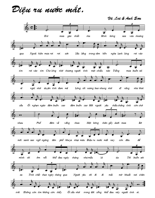 Sheet Điệu ru nước mắt | Vũ Lai – Anh Sơn