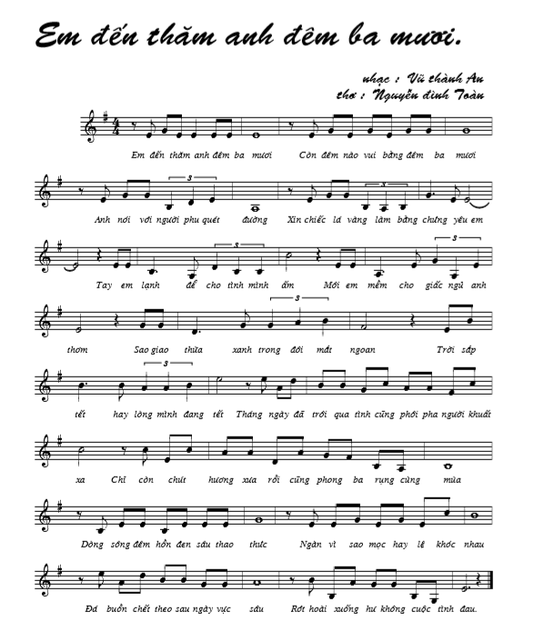 Sheet Em đến thăm Anh đêm Ba mươi | Vũ Thành An (Thơ: Nguyễn Đình Toàn)